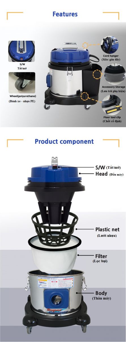| 4 Trước khi hút bụi phải lắp bộ lọc bụi vào máy và thường xuyên vệ sinh lọc bụi để tăng tuổi thọ cho motor. |