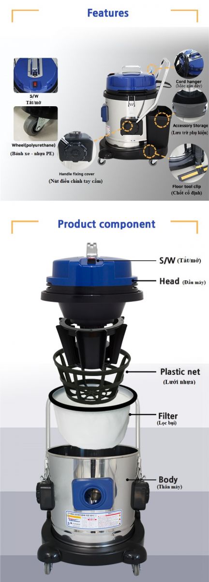 | 4 Trước khi hút bụi phải lắp bộ lọc bụi vào máy và thường xuyên vệ sinh lọc bụi để tăng tuổi thọ cho motor. |